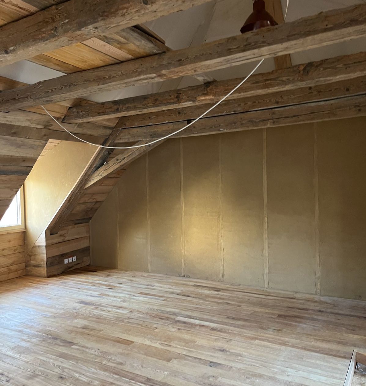Découvrez en images quelques-unes de nos réalisations en plâtrerie, enduits naturels et isolation biosourcée, menées avec soin et respect des matériaux.
